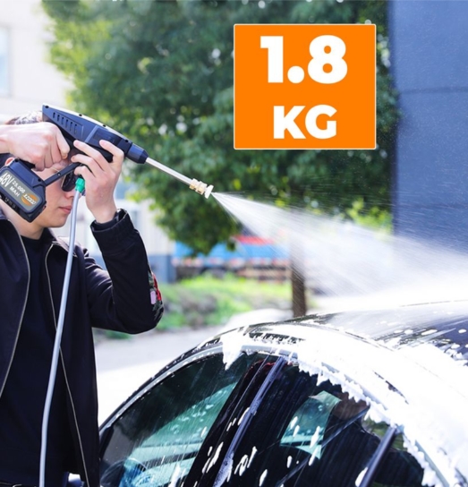 Мощная беспроводная мойка высокого давления является многогранным помощником - она подходит для чистки автомобильного транспорта, садового инвентаря или для очистки территории. Ею также можно отмыть дорожки, забор, стены и садовую мебель.